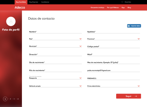 Uploading the users' CV was a critical step during the registration process. The original design didn't include this as part of the process itself. In this redesign, it was added as another step, we gave information to prevent errors, messages to inform if errors occured, and options to redo an action.